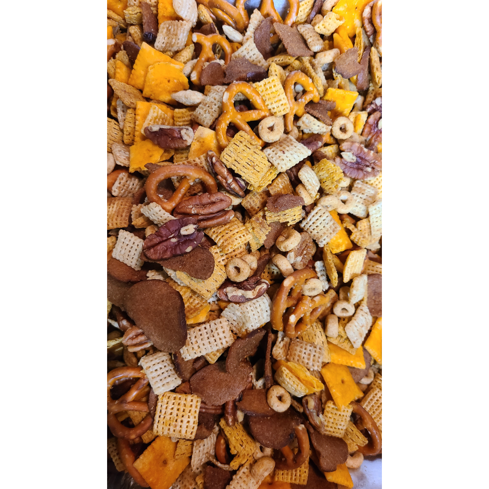 Savory oven baked homemade snack mix. Perfect for snacking, parties, and watching movies or TV.